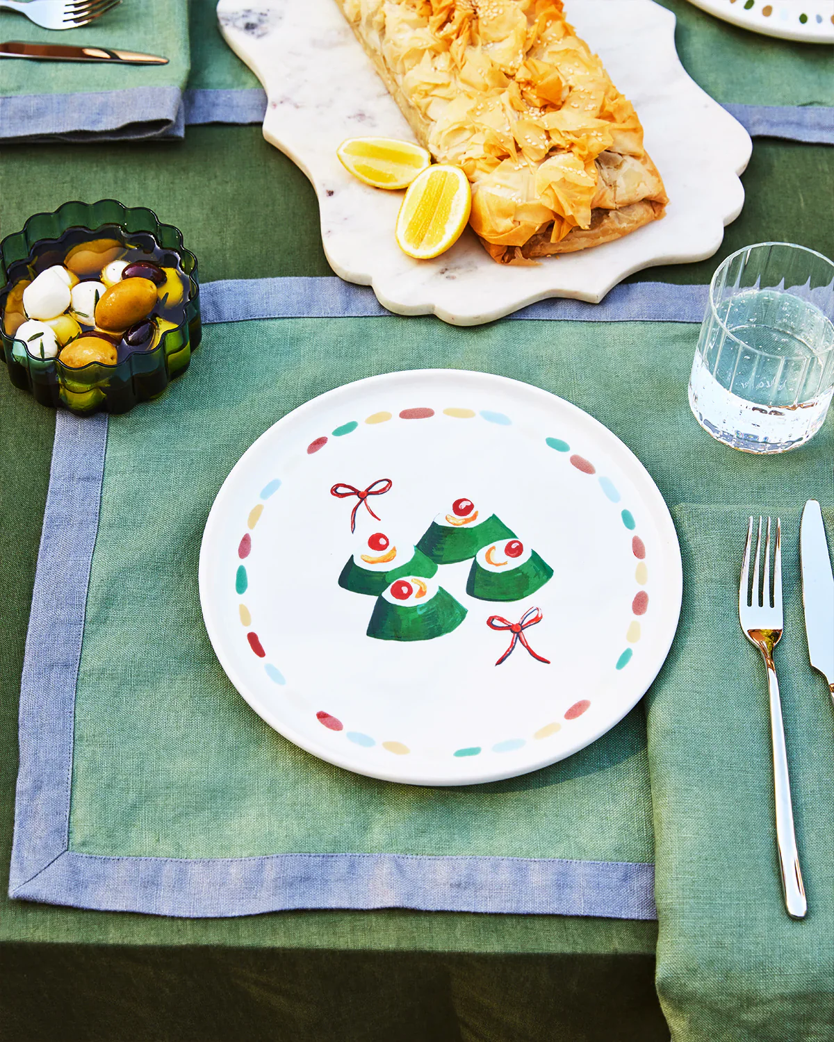 For the prettiest way to plate up dessert, serve it on this Idda Studio x Bed Threads dinner plate. Crowned with candied fruit in technicolor hues, Cassata is a homage to Sicily's traditional cakes, known for their delicate designs and color-rich glazed toppings. The ultimate eye candy for any sweet tooth, this gorgeous plate will transform your table and makes anything served on it – from pastas to pudding – that much sweeter.