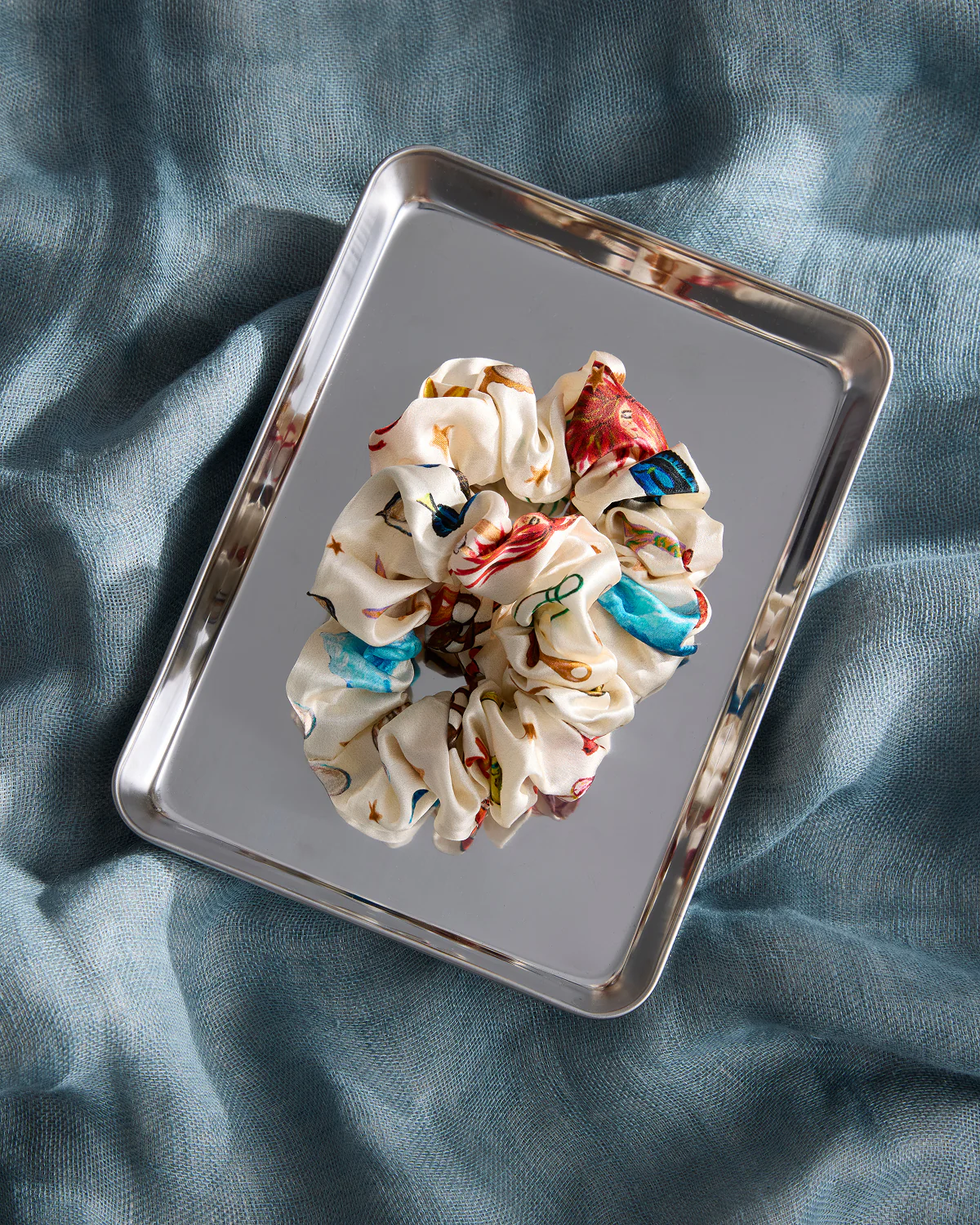 Printed with Brigitte Grant’s dreamy La Sirène imagery, these limited-edition 100% Mulberry Silk Scrunchies capture the playful ease of summer by the sea. Fit for a mermaid’s tresses, a gentle hold and smooth texture tames wind-tossed strands and brings a touch of polish. A small detail with a lot of charm – simple, effortless, and made for everyday moments.