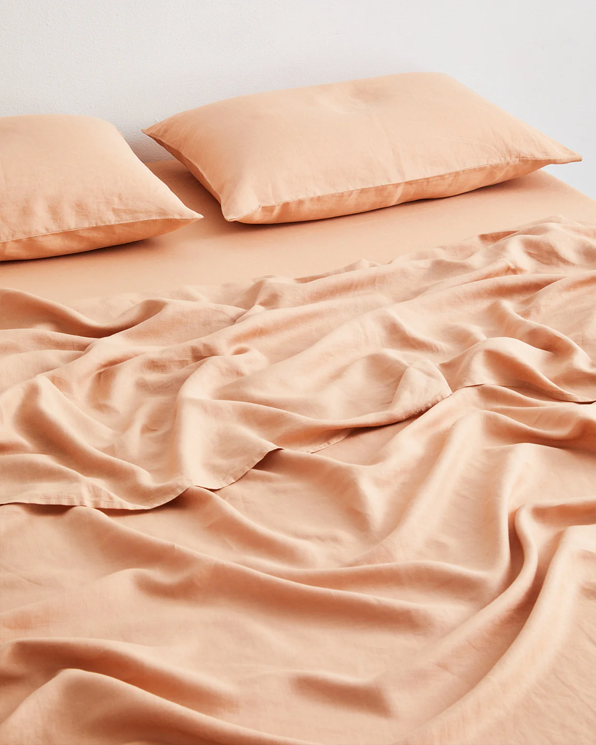 Buttery soft, pre-washed and designed to last, our 100% French flax linen sheet set in Terracotta includes two pillowcases, a flat sheet and a fitted sheet. Perfect for those who prefer to sleep without a duvet cover, or simply love a layered linen-clad bed.